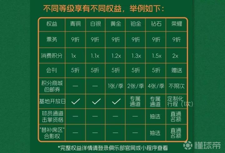 另外,浙江队会员今年新增等级成长体系,将根据上一年的消费积分等来获得等级提升,不同的等级将会获得不同的权益,具体权益如下图。