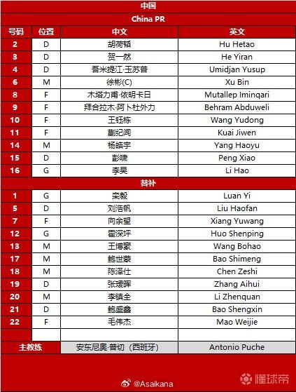 16-李昊、3-贺一然、15-彭啸、4-吾米提江、23-杨希、2-胡荷韬、20-李镇全、6-徐彬、8-木塔力甫、10-王钰栋、9-拜合拉木
