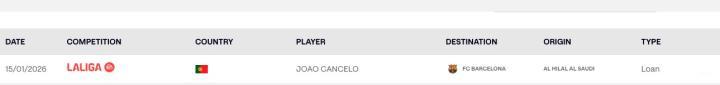 当地时间1月15日,西甲官网显示,巴萨已为坎塞洛在西甲完成注册。