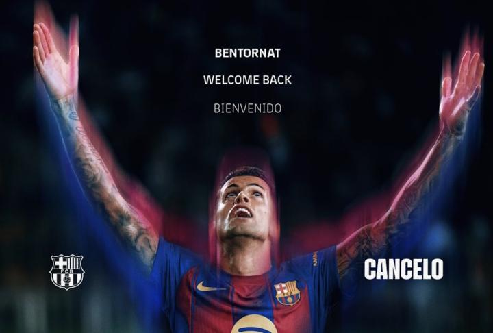巴萨官方此前确认,坎塞洛以租借的方式再次加盟俱乐部,租期至本赛季结束。