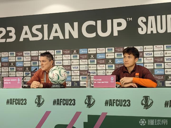 懂球帝记者@雷杰深 现场报道,在U23国足点球淘汰乌兹别克斯坦,历史性地晋级U23亚洲杯4强后,本场比赛最佳球员李昊随主教练安东尼奥出席了新闻发布会。