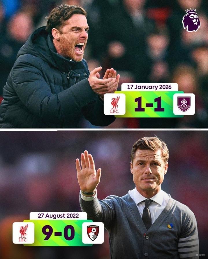 英超官方指出,伯恩利主帅斯科特-帕克上一次带队作客安菲尔德球场,是2022年8月27日,当时伯恩茅斯0-9落败。那也成为了帕克执教伯恩茅斯的最后一场比赛。