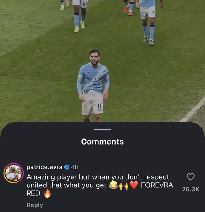 在一条相关的社媒帖子下,埃弗拉写道:“他是一名非常有天赋的球员,但如果你不尊重曼联,那结果往往就是这样。永远的红魔。”