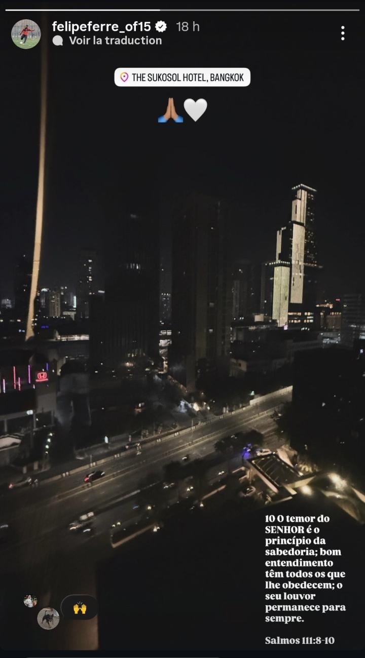 辽宁铁人外援费利佩在社交媒体上分享了自己抵达泰国曼谷的照片。