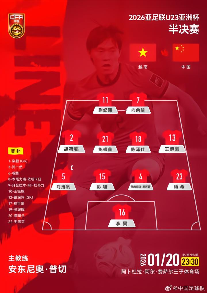 北京时间1月20日23:30,U23国足即将在U23亚洲杯半决赛当中迎战越南。本场比赛官方提供的阵型中,U23国足继续维持了本届赛事一贯的442阵型不变,但中前场进行了大幅度的人员调整。