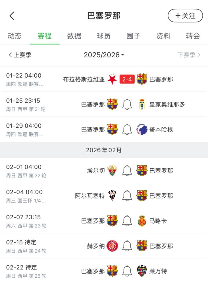 未来一个月,巴萨将面临西甲、欧冠、国王杯三线作战。如果巴萨未能在欧冠直通16强,佩德里也可能错过欧冠淘汰赛附加赛的首回合比赛(2月17-18日)。