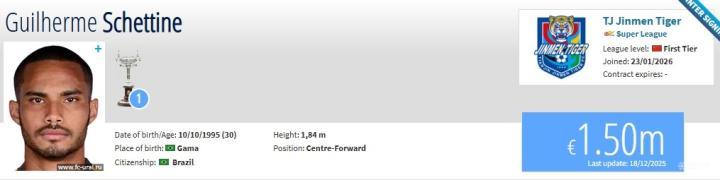 北京时间1月23日,德转更新,葡超莫雷拉人前锋吉列尔梅-谢蒂内加盟天津津门虎,转会费70万欧。