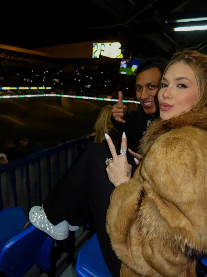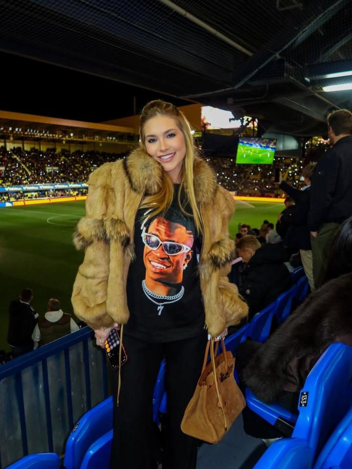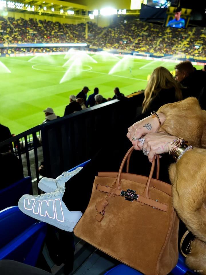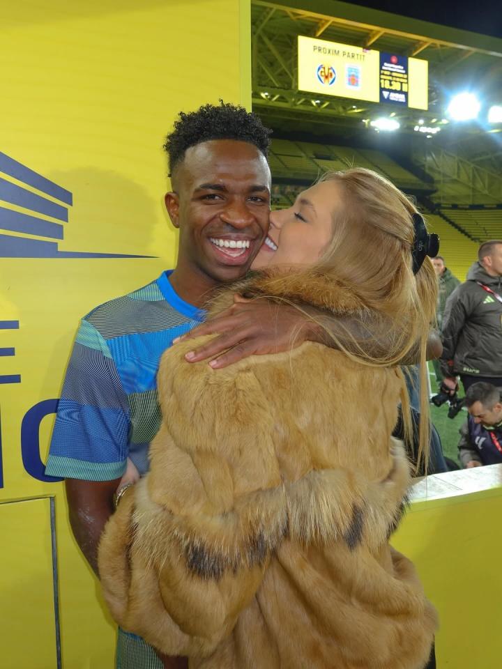 西甲第21轮,皇马客场2-0战胜比利亚雷亚尔,维尼修斯女友维吉尼亚也来到了黄潜主场观看比赛,在赛后发布了社媒庆祝男友比赛获胜。