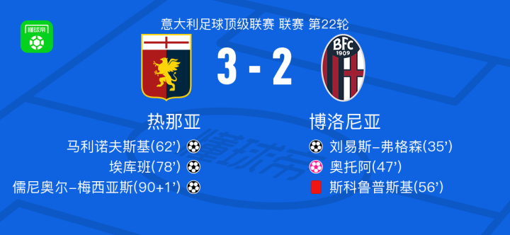 热那亚3-2逆转博洛尼亚,儒尼奥尔-梅西亚斯、埃库班建功