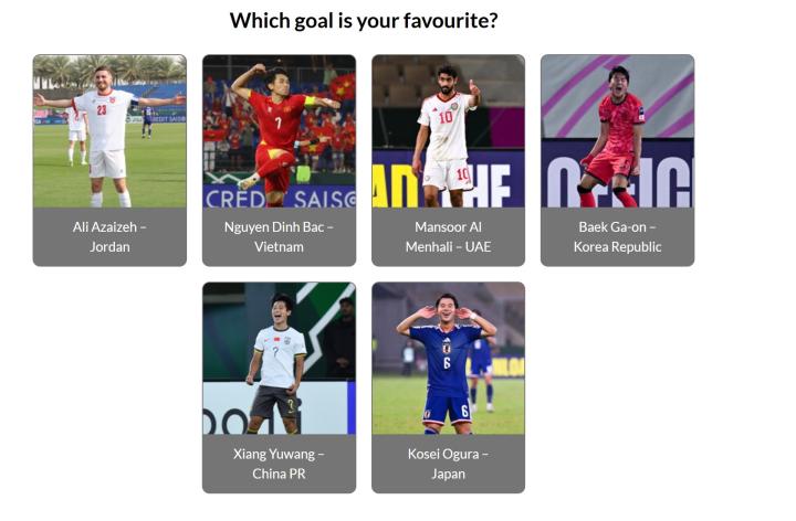 本次U23亚洲杯最佳淘汰赛进球评选页面AFC U23 Asian Cup Saudi Arabia 2026 - Vote for your favourite Knockout Stage goal