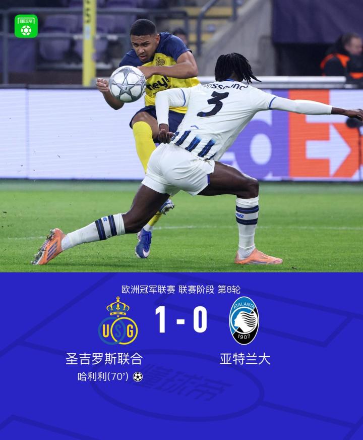 圣吉罗斯联合1-0亚特兰大,哈利利一剑封喉