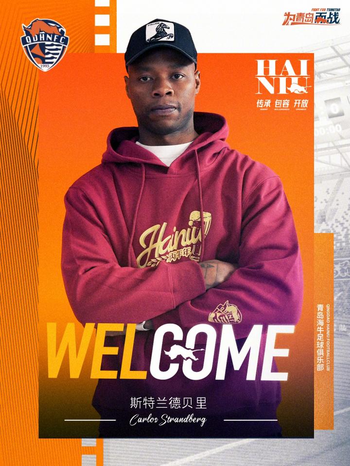 经协商一致,瑞典前锋斯特兰德贝里(Carlos Strandberg)正式加盟青岛海牛足球俱乐部,欢迎他的到来。