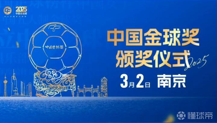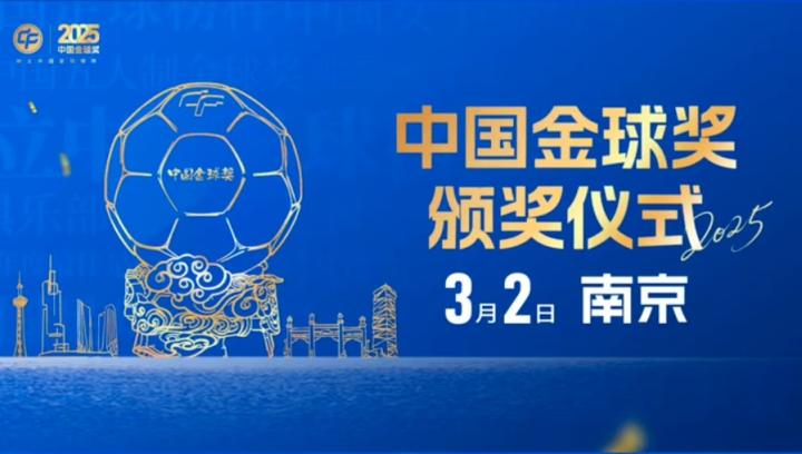 北京时间2月3日,体坛传媒官方消息,2025中国金球奖颁奖仪式将于3月2日在南京举行。
