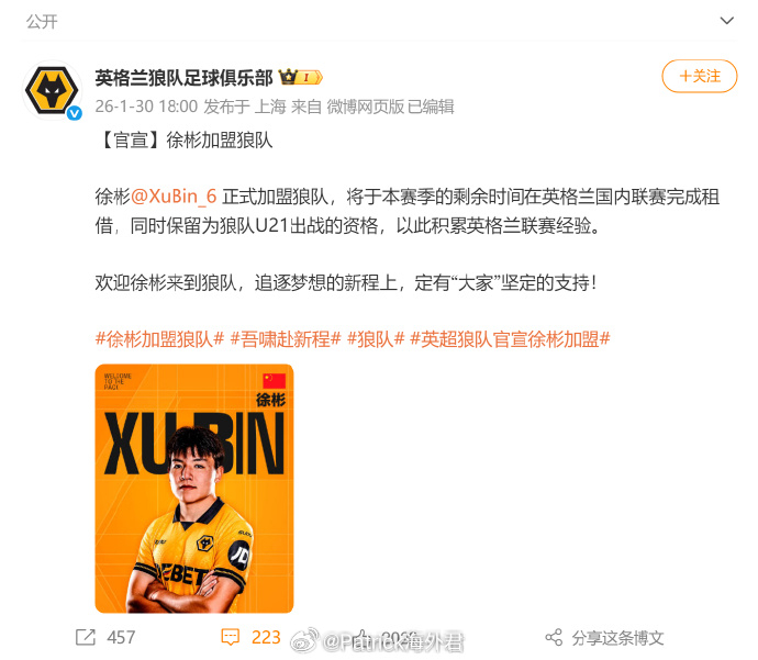 北京时间2月4日,博主“Patrick海外君”发文分析了徐彬的情况。