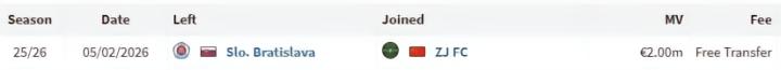 北京时间2月6日,据德转显示,布拉迪斯拉发中场托利奇加盟浙江队。