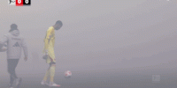 第10分钟,球迷燃放烟花造成场上烟雾过大,裁判暂时吹停比赛