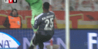 第25分钟,哨响后卡利穆恩多仍做出射门动作,裁判对其出示黄牌警告