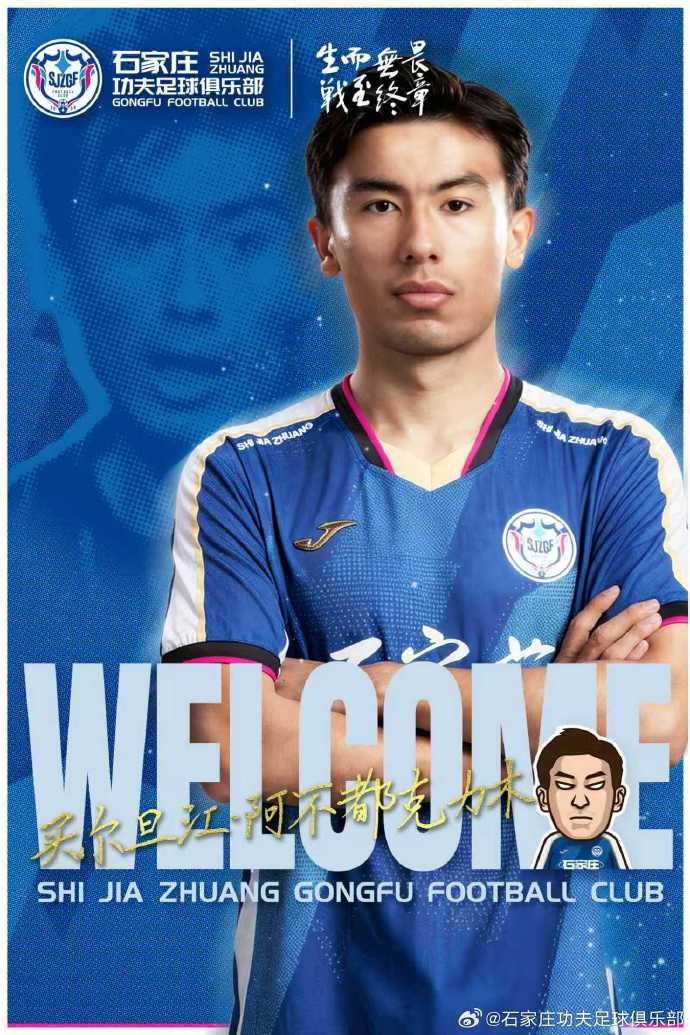 经石家庄功夫足球俱乐部与球员本人友好协商并达成一致,即日起,买尔旦江-阿不都克力木正式加盟球队。2026赛季将身披石家庄功夫战袍,征战中甲联赛及相关赛事。