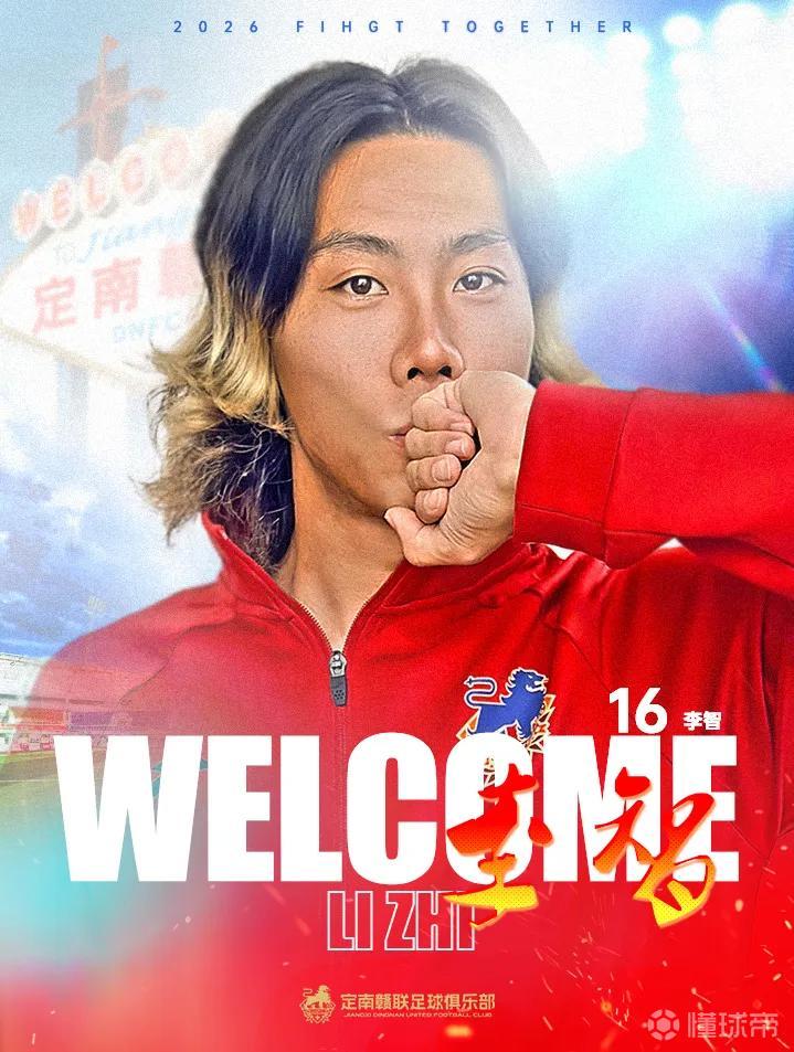 2026赛季李智转会至定南赣联,将身穿16号球衣代表定南赣联参加中甲联赛,欢迎李智加入定南赣联足球俱乐部。