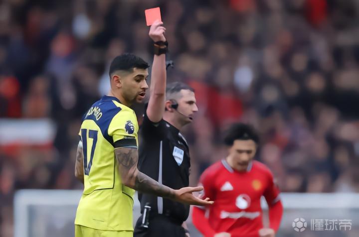 比赛初期,这名后卫对卡塞米罗一次动作失控的铲球后,裁判随即出示红牌将其罚下。