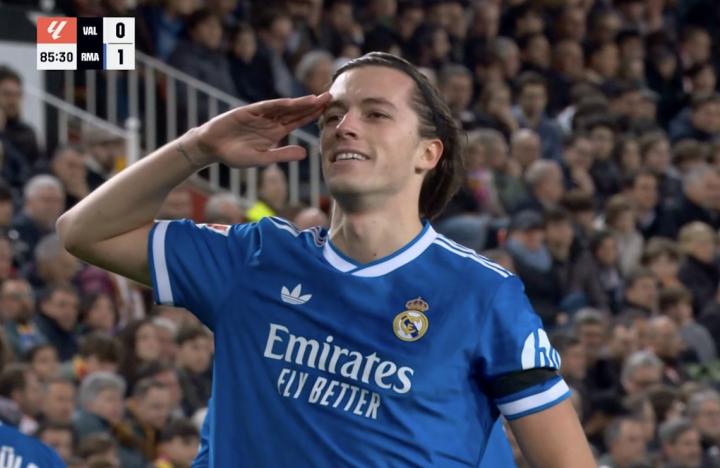 据统计,这是自2022年4月客场对阵塞维利亚(卡瓦哈尔、纳乔)以来,首次有两名皇马后卫在客场比赛中连线进球。