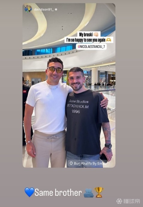 正在迪拜冬训的大连英博外援斯坦丘晒与原武汉三镇队友戴维森、阿齐兹合照。