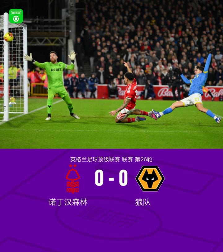 诺丁汉森林0-0狼队,卢卡进球被吹,若泽-萨神扑建功