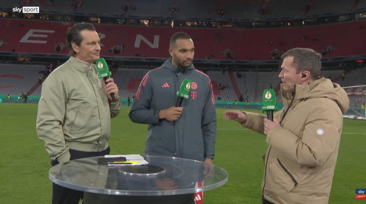 德国杯1/4决赛,拜仁2-0战胜莱比锡,拜仁后卫约纳坦-塔赛后接受了天空体育的采访。