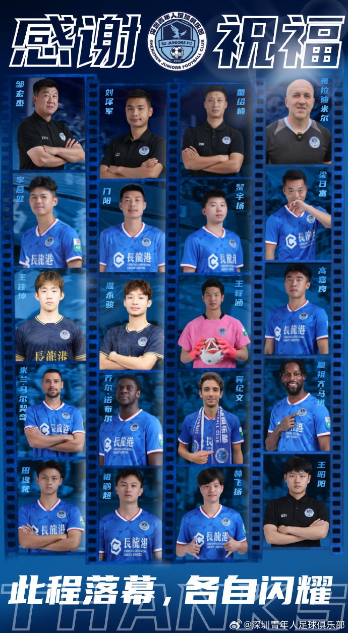 感谢每一位伙伴在效力期间的全力以赴。从训练场到赛场,从朝夕相伴到并肩作战,你们用汗水与热爱,为深圳青年人足球俱乐部留下了珍贵的印记。山水有相逢,来日皆可期。