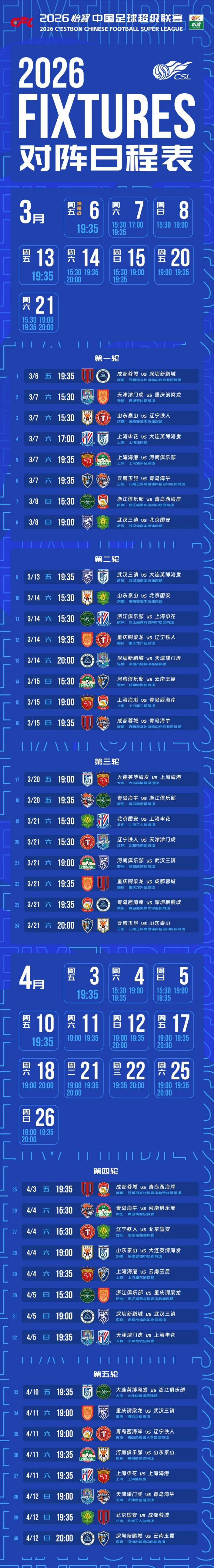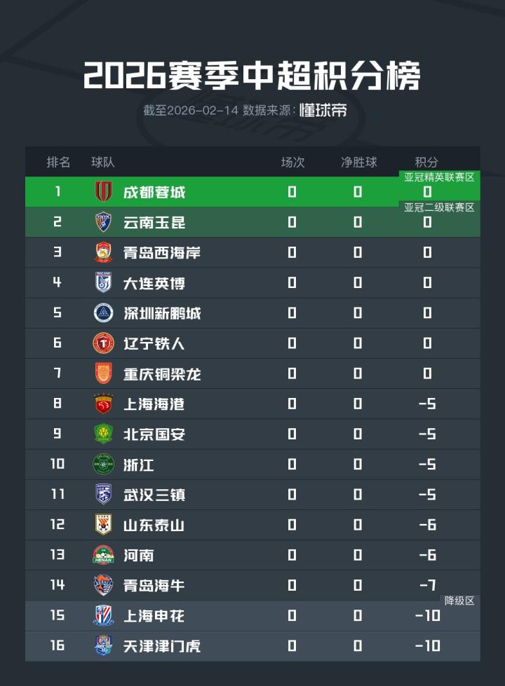 2026赛季中超联赛官方赛程公布,本赛季中超最特殊之处在于,9支球队将带着负分开局,因此开局阶段的抢分至关重要?