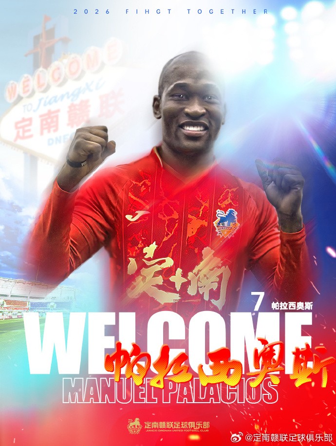 2026赛季帕拉西奥斯转会至定南赣联,将身穿7号球衣代表定南赣联参加中甲联赛,欢迎帕拉西奥斯加入定南赣联足球俱乐部。