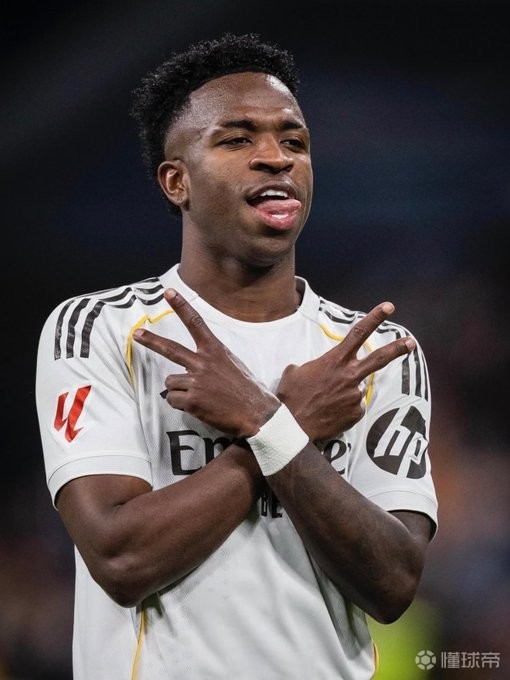 值得一提的是,维尼修斯在对阵皇家社会的比赛中庆祝进球时,比出了VV的手势。