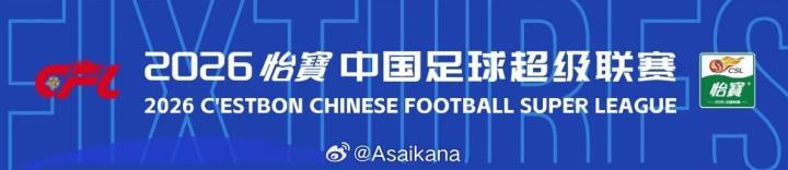 在中超公布新赛季赛程后,中超也公布了新赛季的冠名,新赛季中超联赛冠名为2026怡宝中国足球超级联赛。