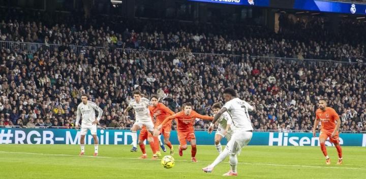根据《世界体育报》的报道,2月1日皇马对阵巴列卡诺的西甲比赛尾声阶段,裁判判罚给皇家马德里1粒点球,这是皇马单赛季获得的第11粒点球,追平了队史单赛季点球纪录。而在第24轮对阵皇家社会的比赛中,他们又两度造点并罚进,目前已累计获得13粒点球。