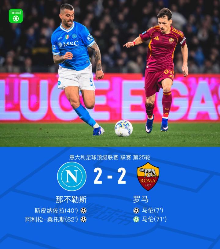 那不勒斯2-2罗马,马伦双响,斯皮纳佐拉破旧主,阿利松破门