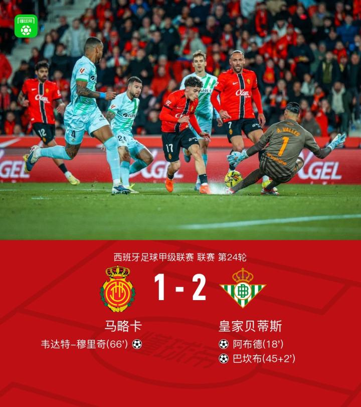 贝蒂斯2-1马略卡,阿布德、巴坎布破门,安东尼献助攻