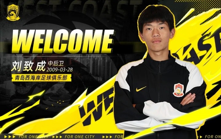 欢迎刘致成加入青岛西海岸队!与球队并肩作战,在中超赛场共赴新程,为青岛这座城市续写足球荣光!