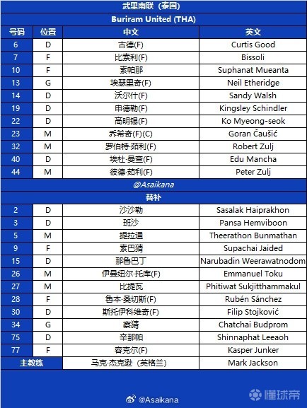替补:2-沙沙勒、3-班沙、5-汶马探、9-素巴猜、15-那鲁巴丁、26-托库、27-比提瓦、28-鲁文-桑切斯、30-菲利普-斯托伊科维奇、34-察猜、75-辛那帕、77-容克尔