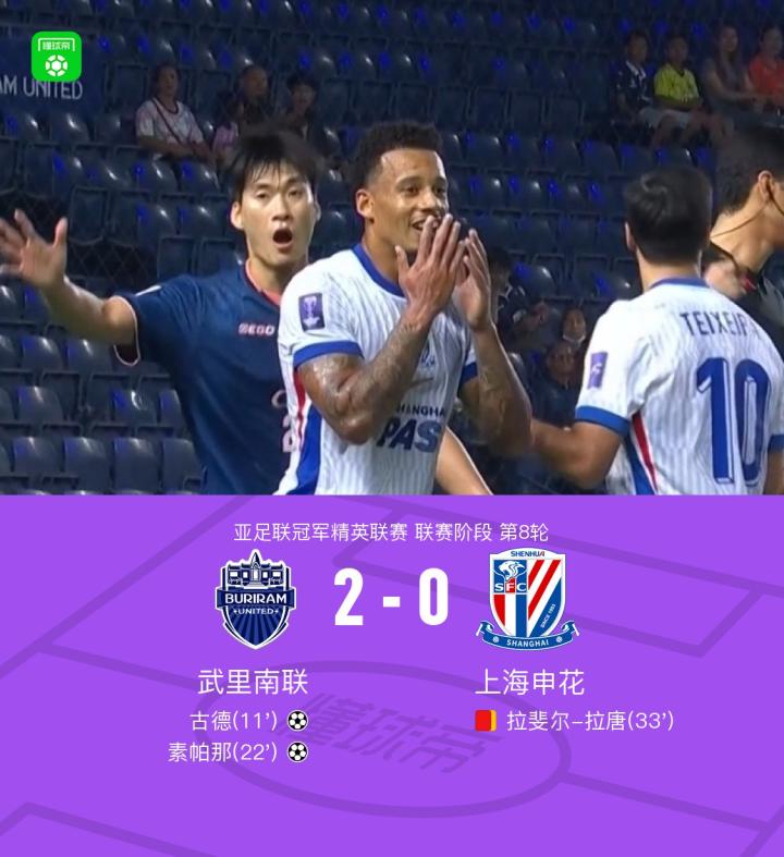 十人申花0-2武里南联,拉唐两分钟两黄被罚下,米内罗伤退