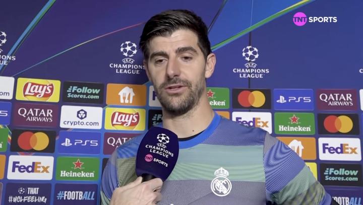 欧冠淘汰赛附加赛首回合,皇马客场1-0战胜本菲卡,皇马门将库尔图瓦赛后接受了TNT体育墨西哥频道的采访。