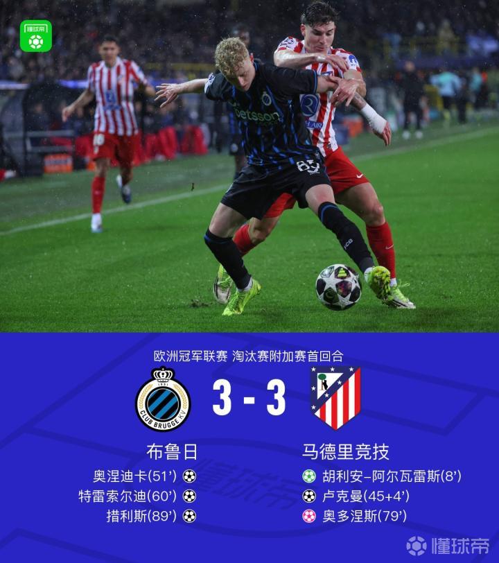 【XbotGo丨马竞客场3-3遭布鲁日绝平,阿尔瓦雷斯、卢克曼破门】