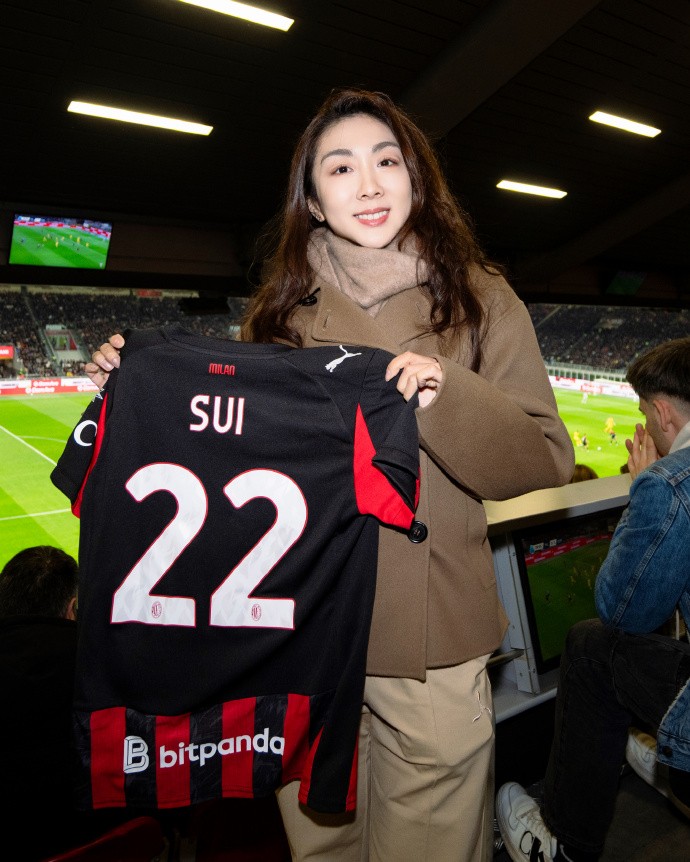 米兰官方社媒在赛后写道:“从冰场到绿茵,从旋转跳跃到进球欢呼,都是对热爱的极致诠释⛸️⚽️跨越冰雪,红黑同心,感谢花样滑冰奥运冠军@Guile隋文静 到访圣西罗。”