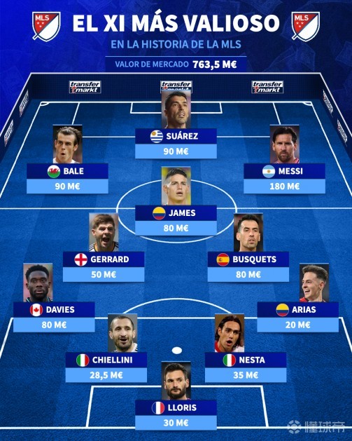 北京时间2月21日,在2026赛季的美职联本周末就会拉开帷幕的情况下,德转统计出了美职联球员历史最高身价的11人阵容,梅西1.8亿欧元领衔,苏亚雷斯、贝尔、哈梅斯-罗德里格斯、杰拉德和内斯塔在列。