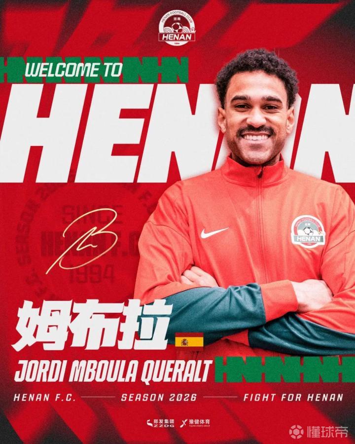 经双方友好协商一致,西班牙球员姆布拉(JORDI MBOULA QUERALT)正式加盟河南足球俱乐部,新赛季他将身披河南战袍,征战各项赛事。
