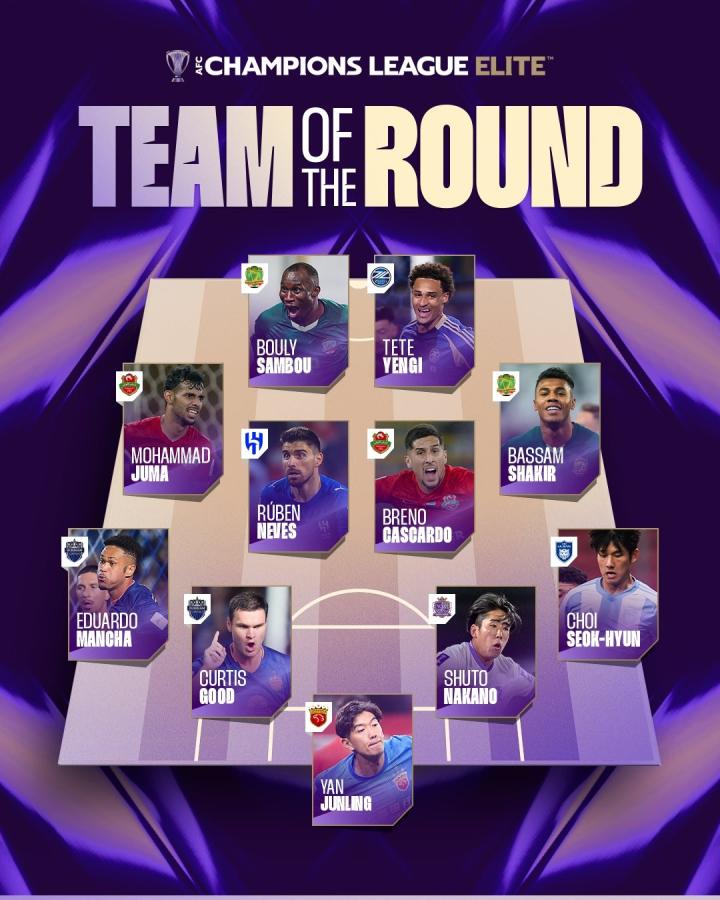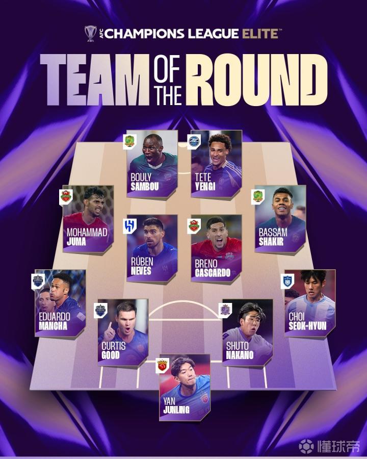 北京时间2月22日,亚冠官方公布了亚冠精英联赛阶段第8轮的最佳阵容,颜骏凌、鲁本-内维斯、泰特-延吉在列。