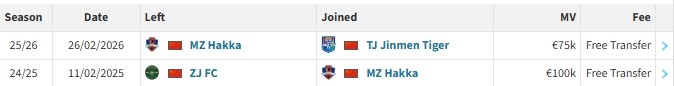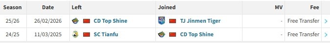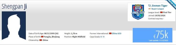 北京时间2月26日,德转更新,季胜攀、乃博宁林自由转会天津津门虎。