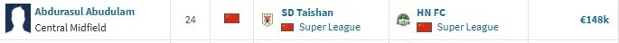 德转更新,山东泰山中场阿卜杜肉苏力加盟河南队,转会费约120万人民币。