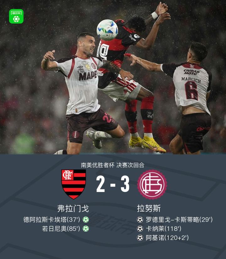 南美优胜者杯拉努斯两回合4-2战胜弗拉门戈夺冠,卡纳莱建功