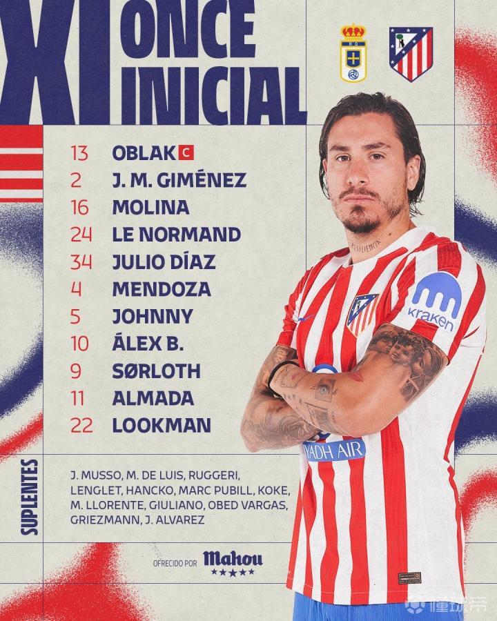 北京时间3月1日凌晨4点,西甲联赛第26轮展开一场焦点战役,马竞对阵皇家奥维耶多。赛前,双方公布首发阵容。