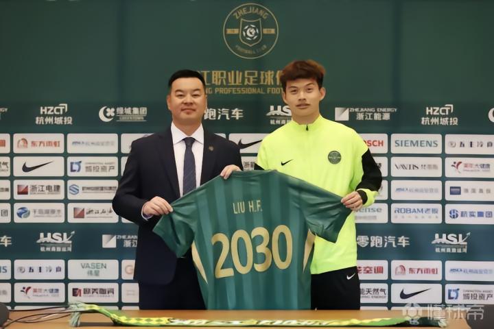 近日,浙江职业足球俱乐部与球员刘浩帆完成续约,新合同延续至2030年。